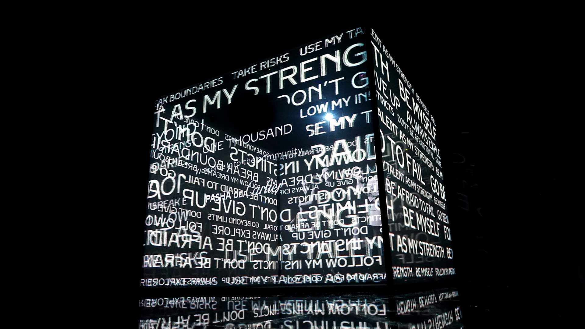 Un enorme Cubo a schermi trasparenti domina lo spazio generando un’intensa atmosfera immersiva. Gli ospiti hanno preso parte attiva all’esperienza interagendo direttamente con la struttura: attraverso un piccolo monitor hanno condiviso un messaggio personalizzato che il nostro server ha elaborato e generato in real time sull’installazione, accompagnato da sorprendenti effetti grafici. Forte lo stupore finale nel vedere il proprio nome comparire a fianco degli Ambassador della community Pasha De Cartier.